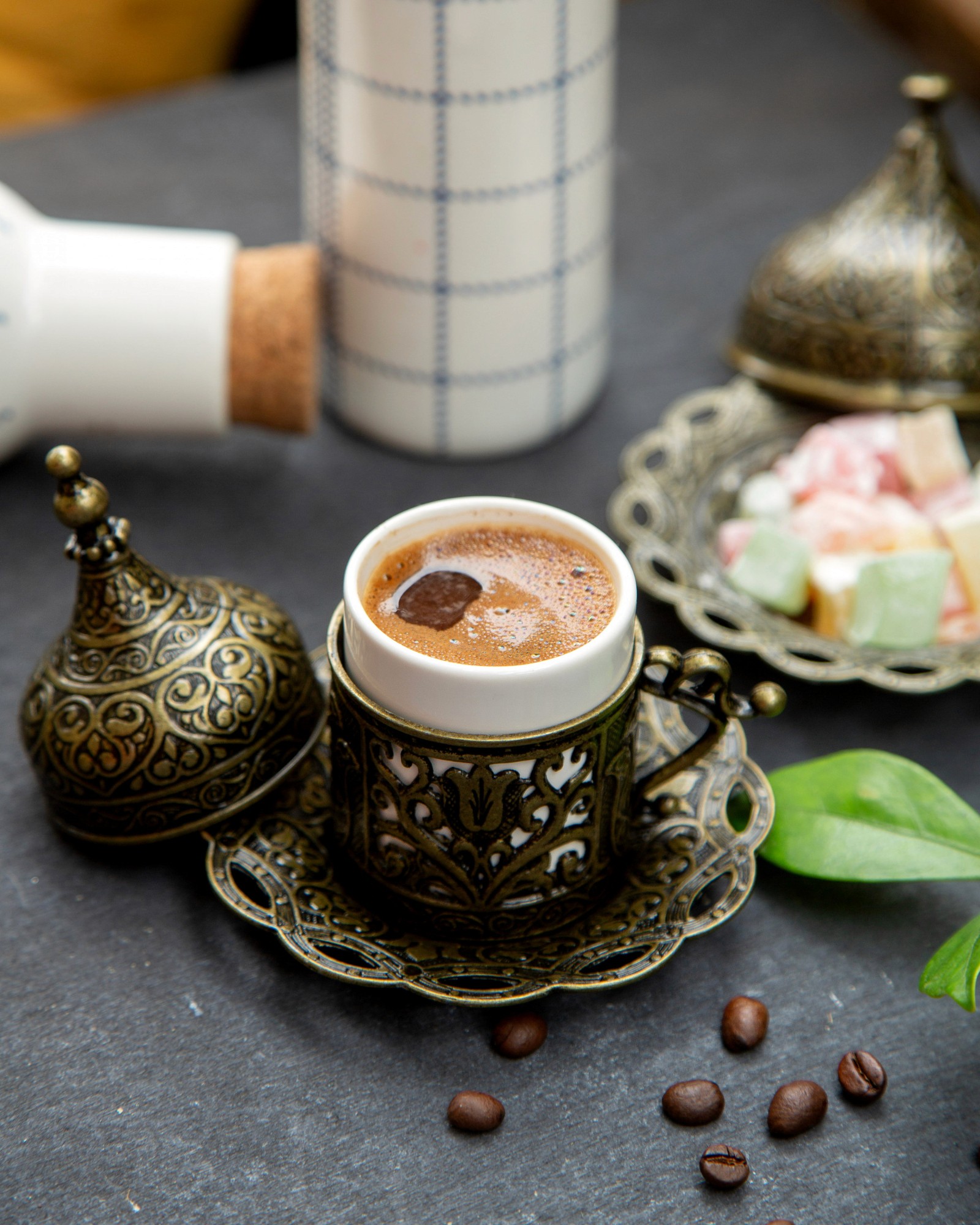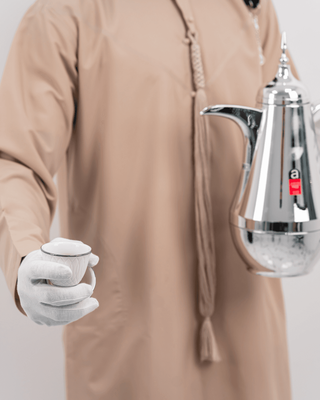 Freshly brewed on site and poured in finjans to welcome guests with quiet courtesy.